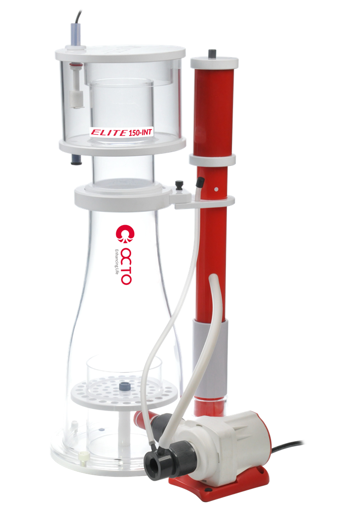 The Elite 150int is equipped with a variable speed Reef Octopus VarioS-2S pinwheel pump with the integrated memory controller. This skimmer features a unique “twist and lifts" collection cup to make removal and cleaning a simple task, an easy to use vented wedge valve provides precise control and an underwater outflow for quiet operation.