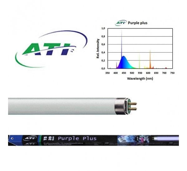 ATI Purple Plus T5 High-Output Fluorescent bulbs combine the properties of a full spectrum bulb with strong red and blue components which brings out the pinks, purples and reds in an aquarium. Recommended Use: in combination with at least 2 or more other T5 bulbs like the Blue Plus and Aquablue Special. Not recommended as a stand-alone bulb.