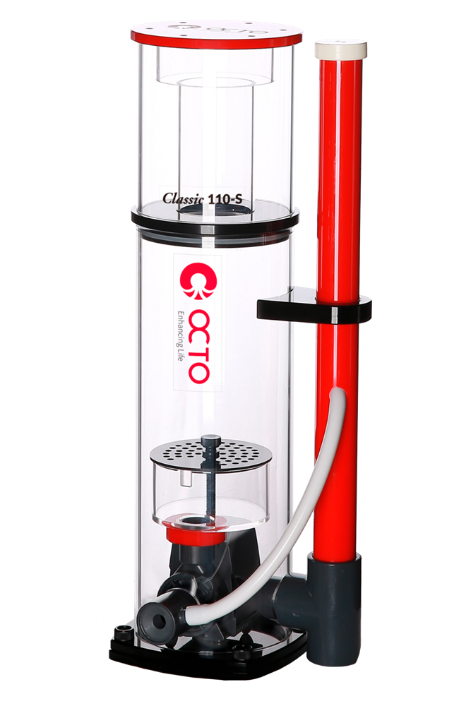 Featuring a small footprint, the OCTO series Classic space saving skimmer. (Classic-S) is an in-sump protein skimmer ideal for aquariums with limited sump space. It is run by our very own AQ pump , encased in a solid acrylic body, can be easily disassembled for maintenance and does not require a feed pump as it draws water directly from the sump.