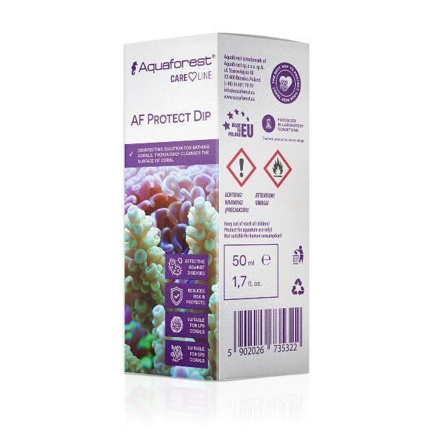 Carry out the bath out of the tank. Shake before use. Dissolve 2.5 ml AF Protect Dip in 5 litres of saltwater or water taken directly from the tank. Immerse the coral in the prepared solution and gently clean its surface by rinsing with water or using a toothbrush. The bath should take up to 5 minutes. To rinse, transfer the coral into a container filled with clean saltwater. Transfer the cleaned coral back into the tank. Once used, the solution may not be reused. Do not pour the solution into the aquarium. Do not use the product if fish, snails, mussels, crabs or shrimp are in the tank. Use only out of the tank. Not suitable for human consumption.
