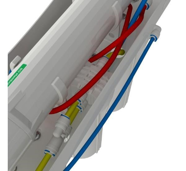 - Auto shut-off valve stops incoming water supply when outflow is turned off (100 GPD model only)